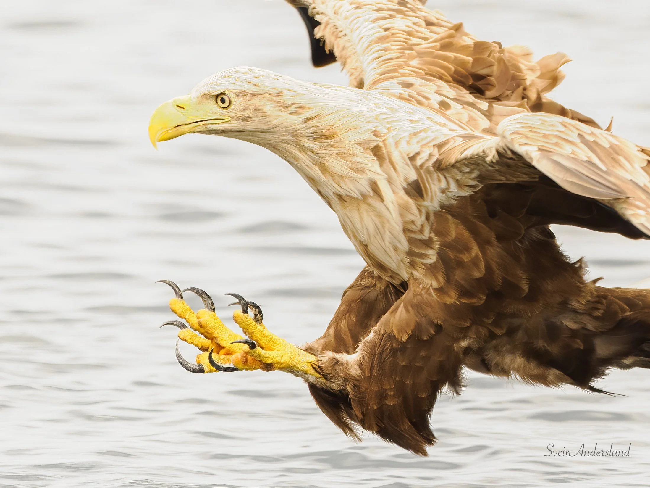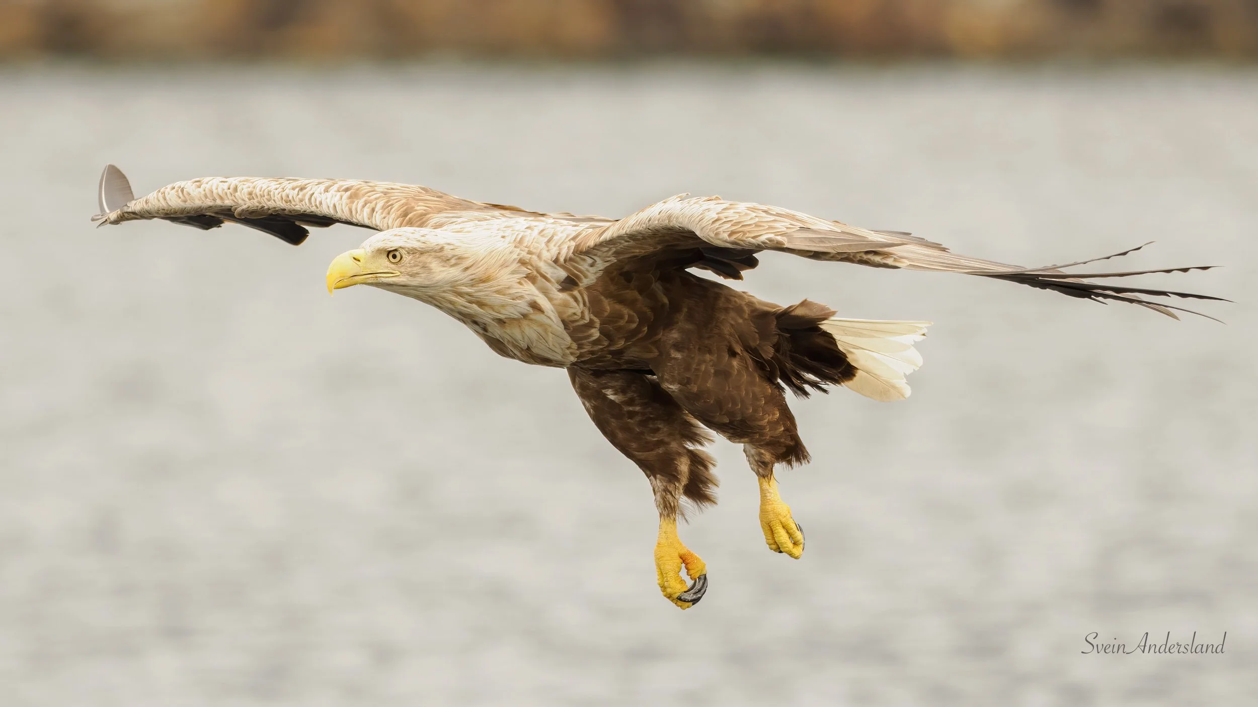 Ny havørn seglar inn mot ein større lyr.