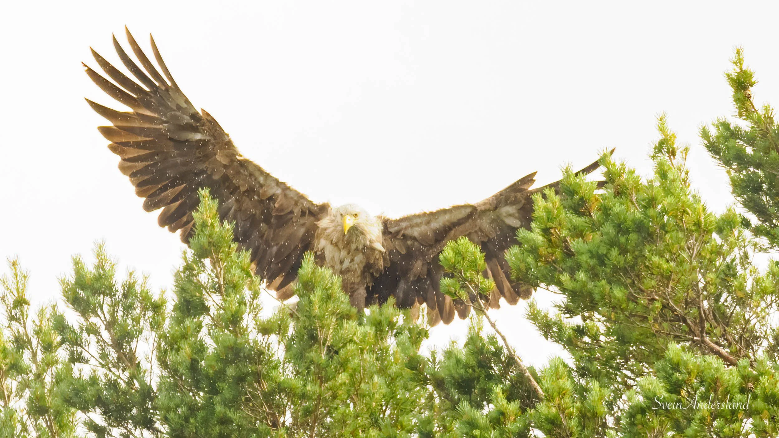 Åtferda til havørna er mykje den same, men det er likevel ikkje likt kvar gong. Kjem den på dette kastet? Kvifor plukker den ikkje opp den fine lyren? Kjem den tilbake for å hente neste fisk? Denne gongen vart ørna verande i reiret, som er nett ute av synet frå sjøen. Eg har gjort det til ein vane å kauke høgt rett før eg kastar fisken, for i tilfelle å venne den til at den lyden tyder at fisk blir kasta. Tidlegare har eg kauka høgt utan å kaste fisk, for å sjå om ørna viser seg. Det har ikkje vore ein suksess, før denne turen. Med ein fisk att i kassen, tok det lang tid før ørna kom tilbake. Denne ørna brukar å kome ganske så kjapt tilbake. Eg kauka difor høgt, og jammen kom ørna fykande. Veldig artig!