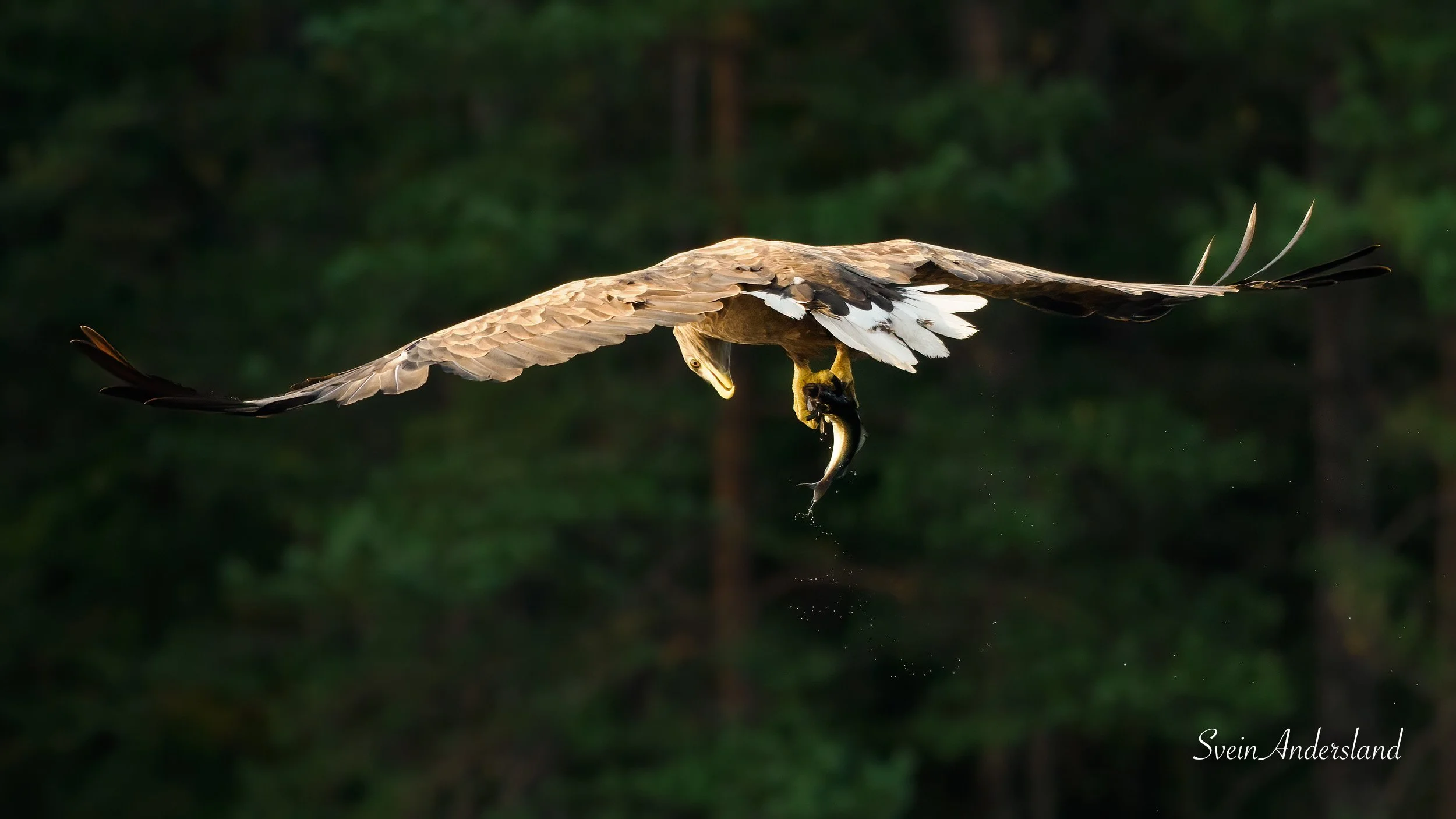 Gyda treff tilsynelatande midt på fisken med høgre kloa si.