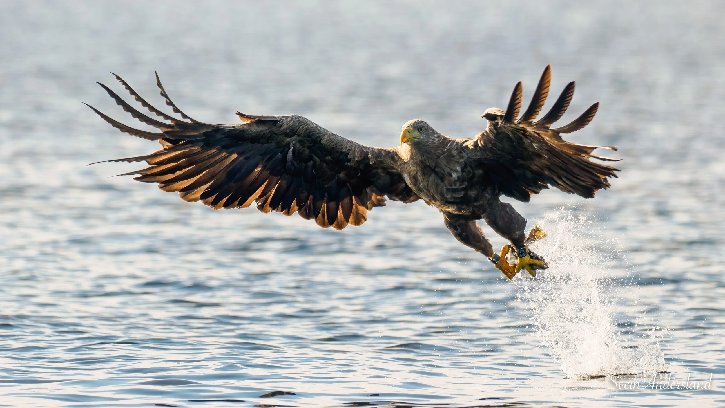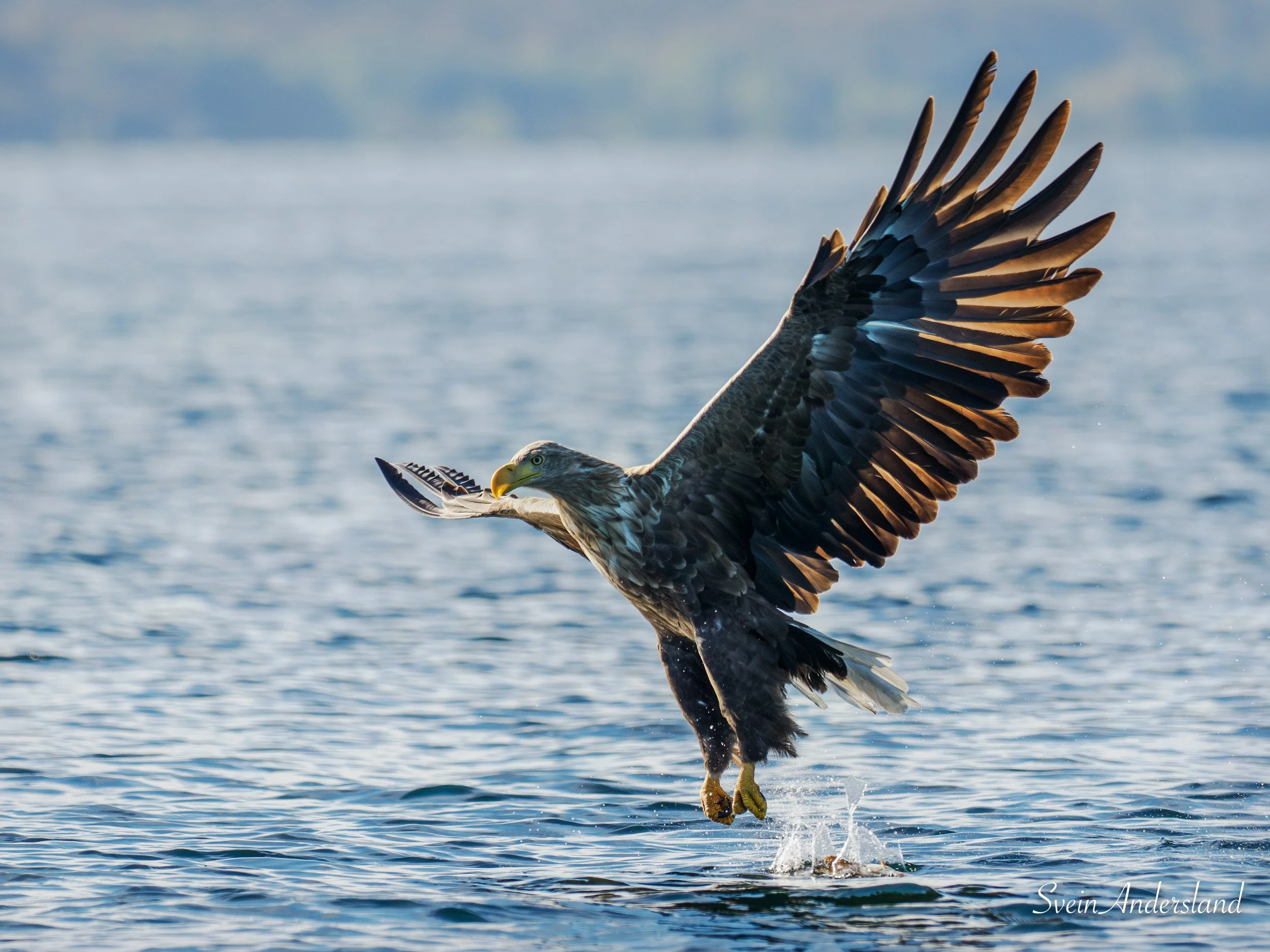 Turen gjekk vidare for å sjå etter Gunda, Otto og kanskje deira to(?) ungar. Her vart det eit par kast som begge to kom på. Først kom Gunda, men som bildene nedanfor viser, så bomma ho igjen på fisken. Ho kjem litt lågt inn og strekar ned i sjøen. Det er ikkje mange ganger eg har sett at det er kontakt med vassflata i løpet av innflyginga.