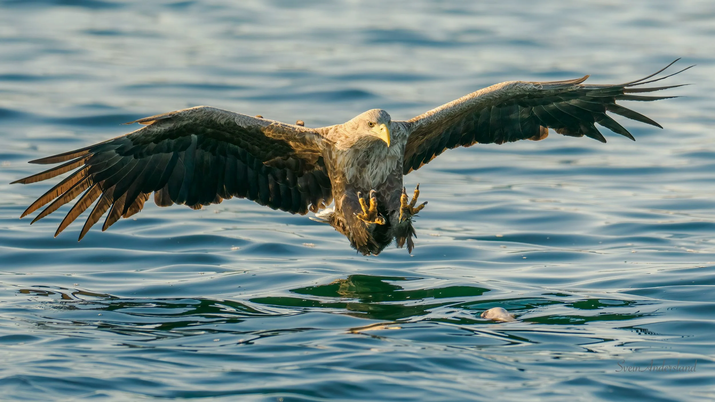 Det er mykje kraft i ei havørn. Her med opptaket i ein litt annan vinkel frå båten. Otto er ei staseleg havørn.