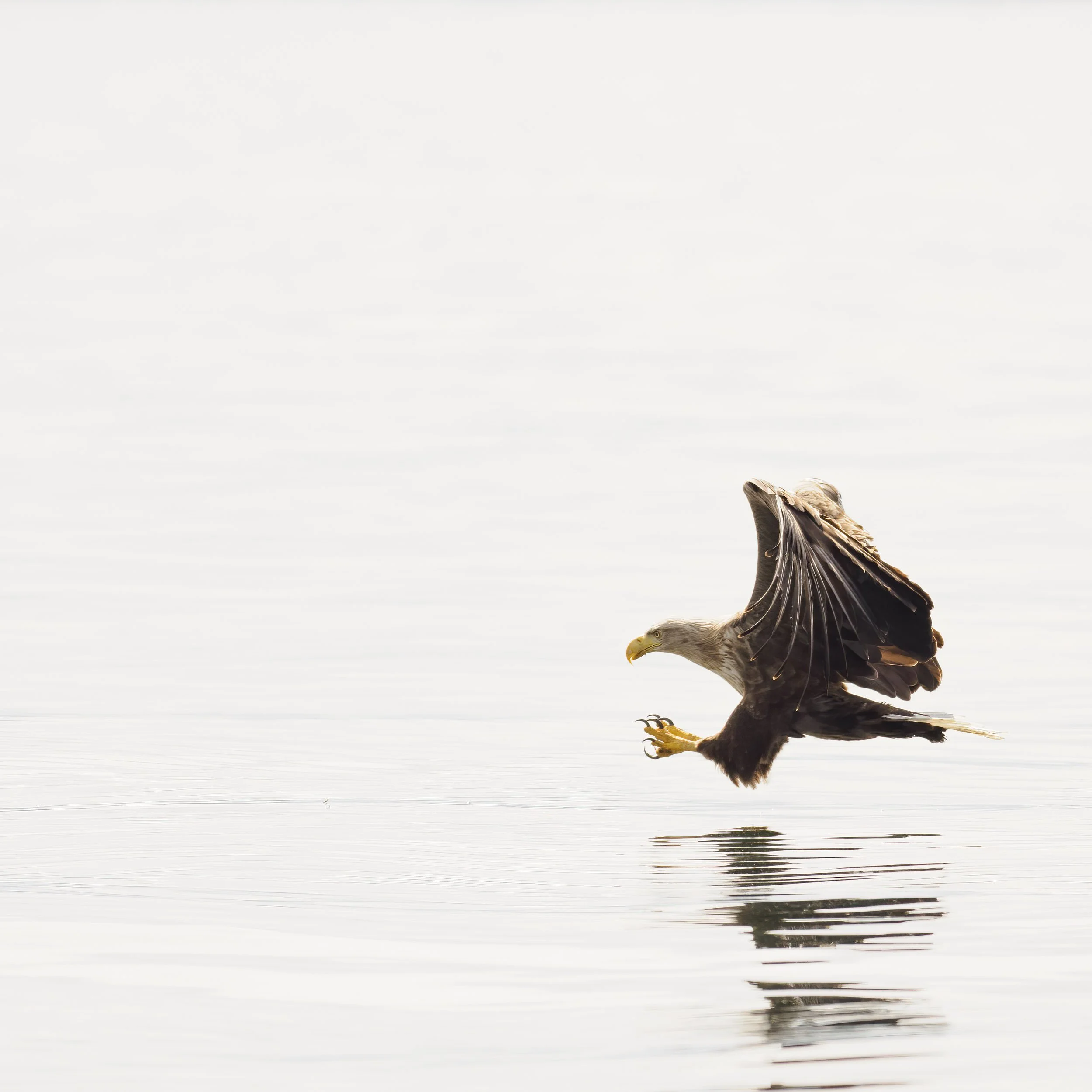 Otto kikkar ned for å sjekke fangsten og for å få feste med høgre kloa. I denne bildeserien har han begge føtene i sjøen, men berre venstre klo fekk feste med ein gong. Det ser ut til å vere ein tendens hos han.