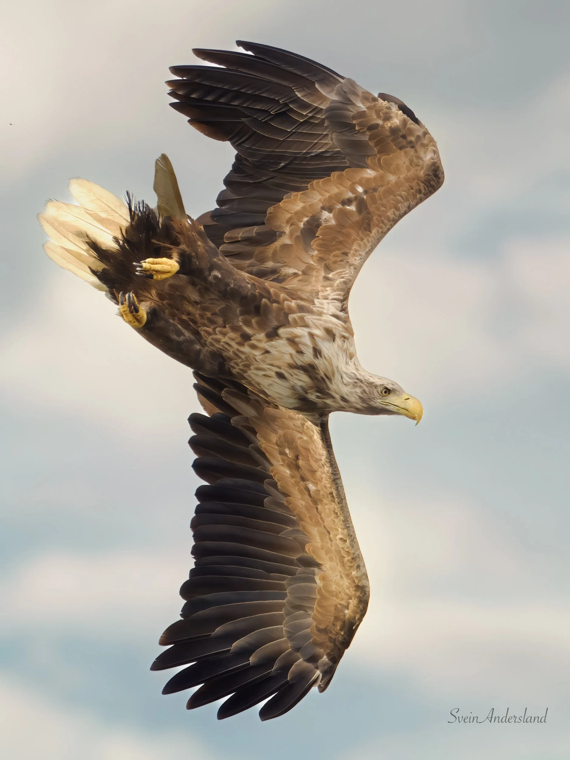 Tor i jakthumør på måse som har stukke av med ørnematen hans. Det er ikkje ofte eg har fått tatt bilde av ørnene når dei set opp denne farten. Det går rimeleg fort, og ein må sjå den i god avstand for å feste autofokusen på den.