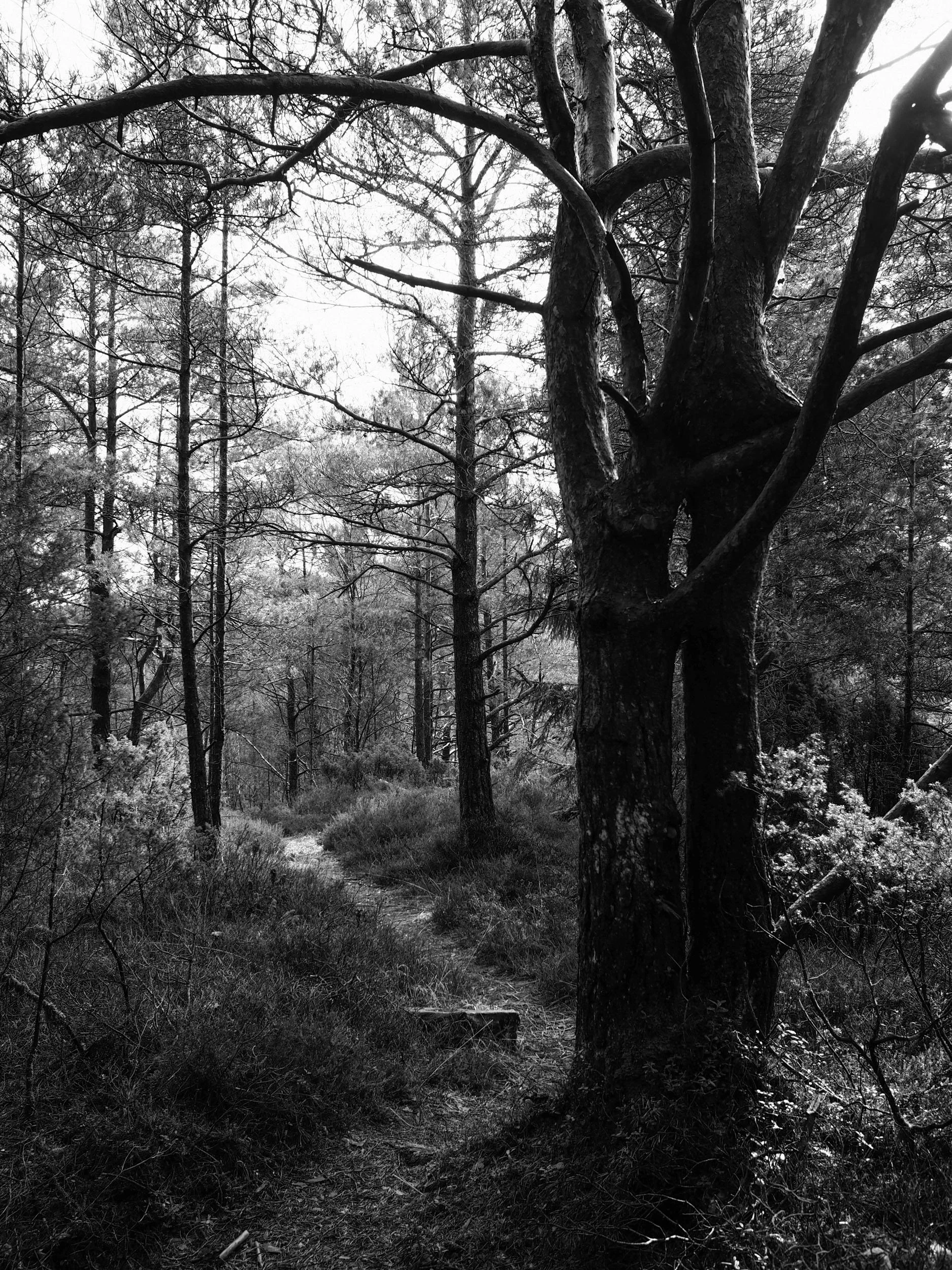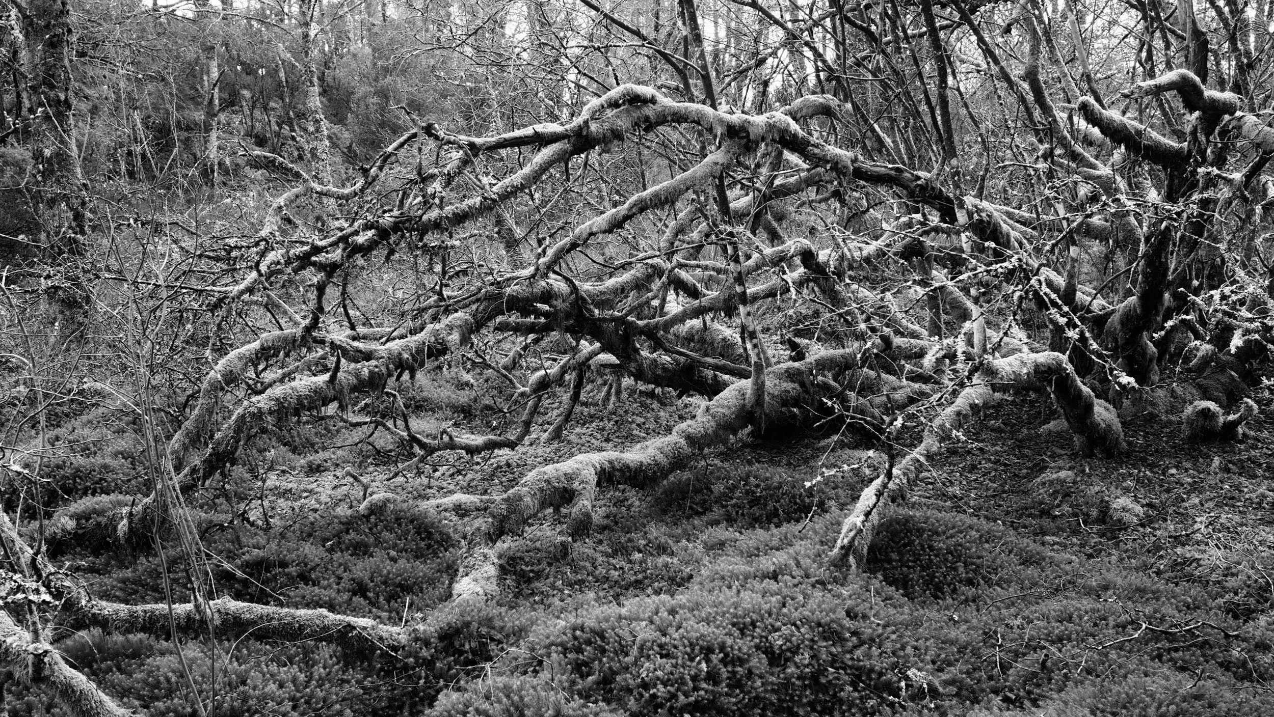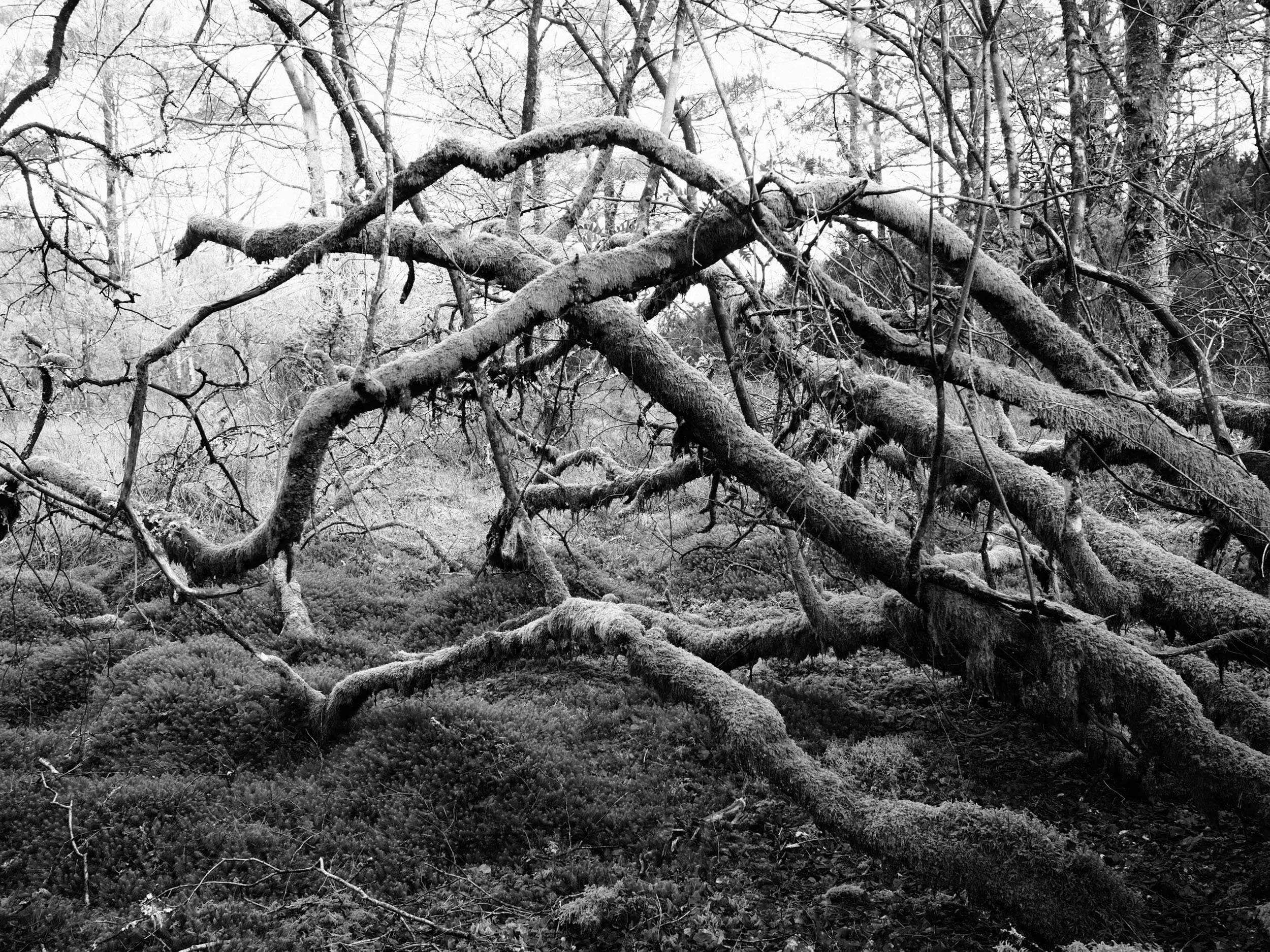Langs Kulturstien passerer ein ei mosegrodd treklynge som strekk seg ut i fleire retningar. Eit opplagt fotomotiv eg har byrja stoppa opp ved og utforska med kameraet. Olympus PEN-F, M.Zuiko 17mm f/1,8