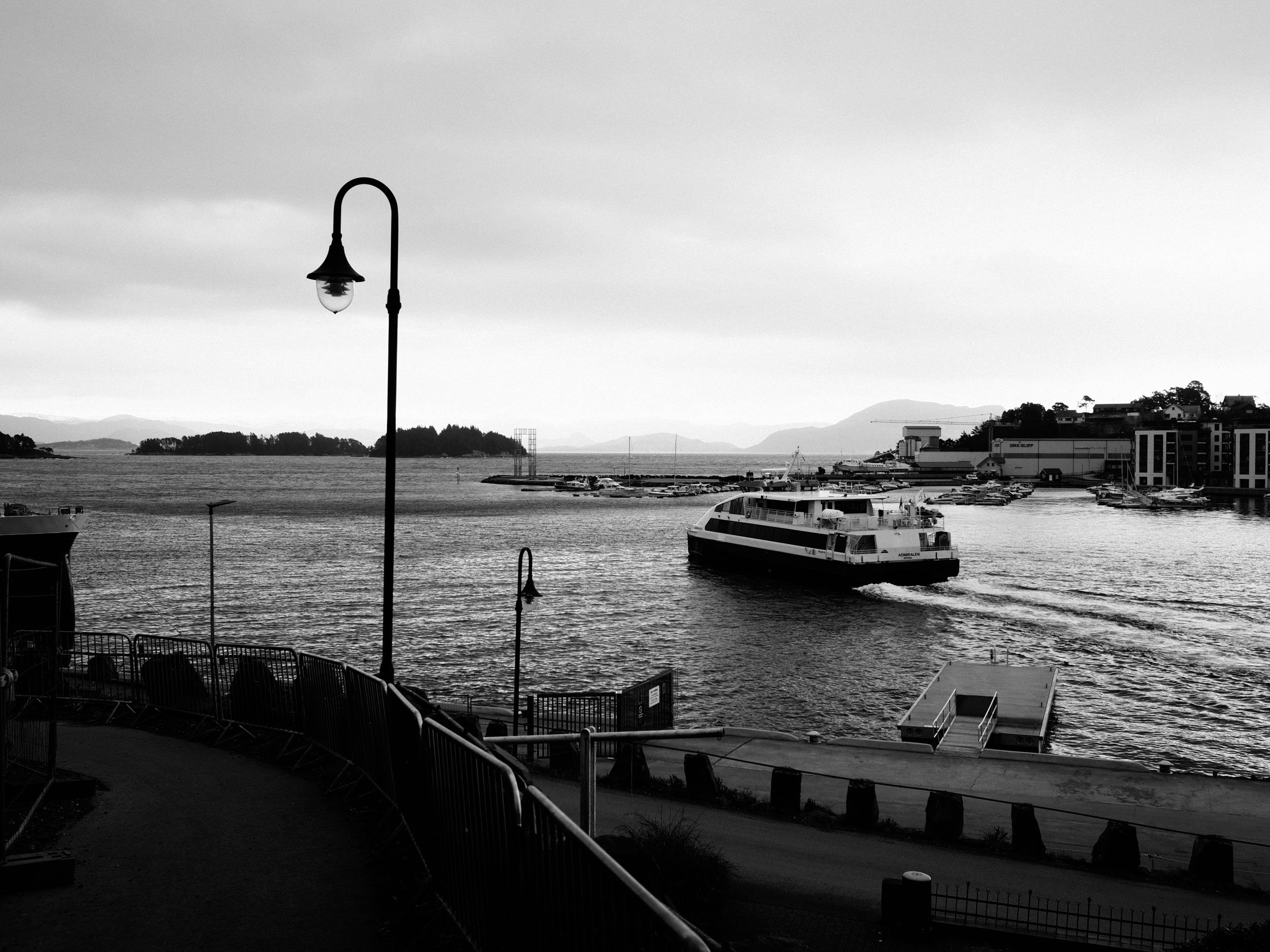 Admiralen på veg ut av Leirvik hamn, eller Vikafle på lokalspråket. Olympus PEN-F, M.Zuiko 17mm f/1,8