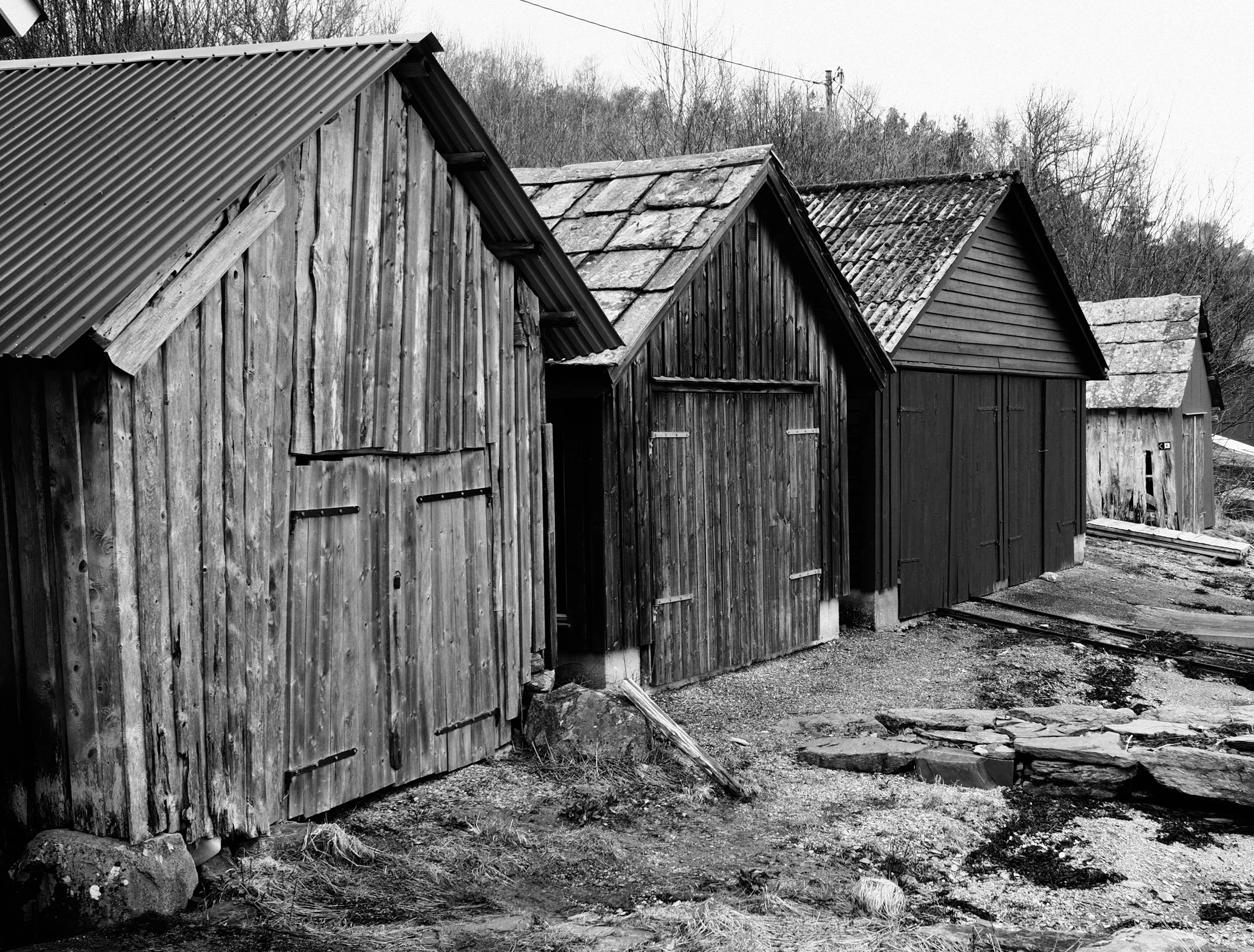 Naustmiljø på Utbjoa med profil Kodak Tri-X. Olympus PEN-F, M.Zuiko 17mm f/1,8