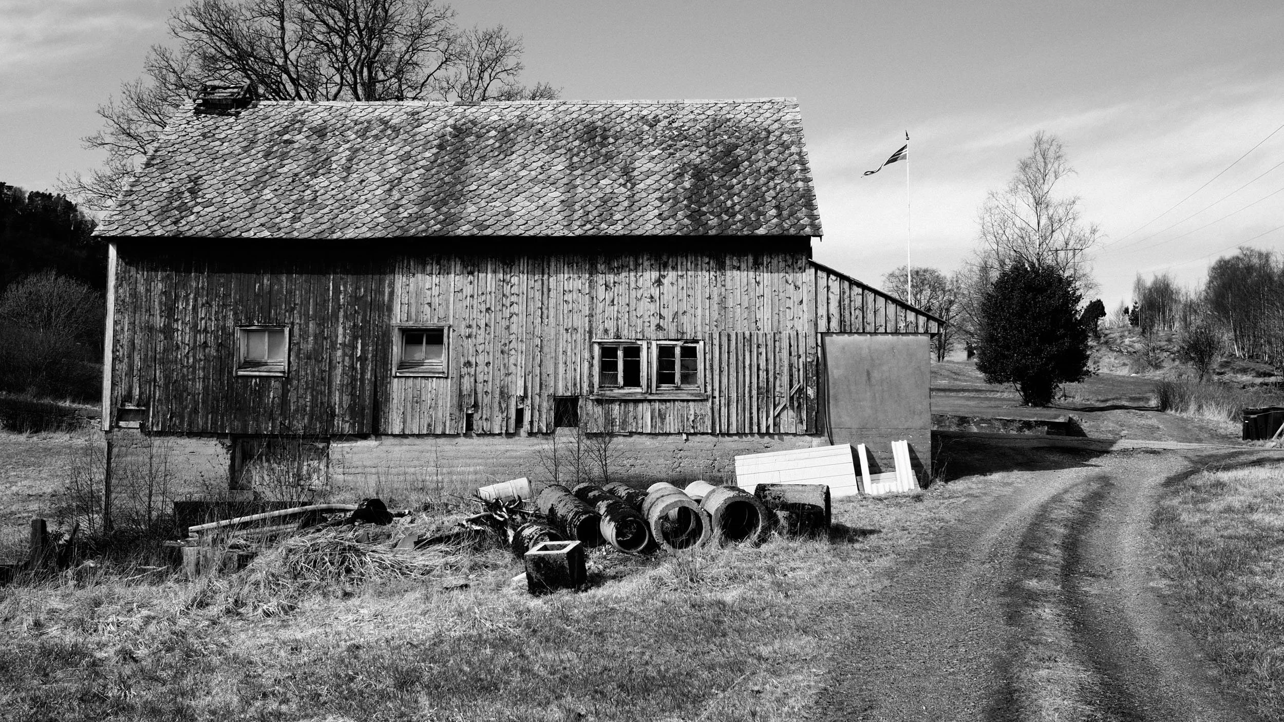 Miljøfoto av den gamle låven. Olympus PEN-F, M.Zuiko 17mm f/1,8
