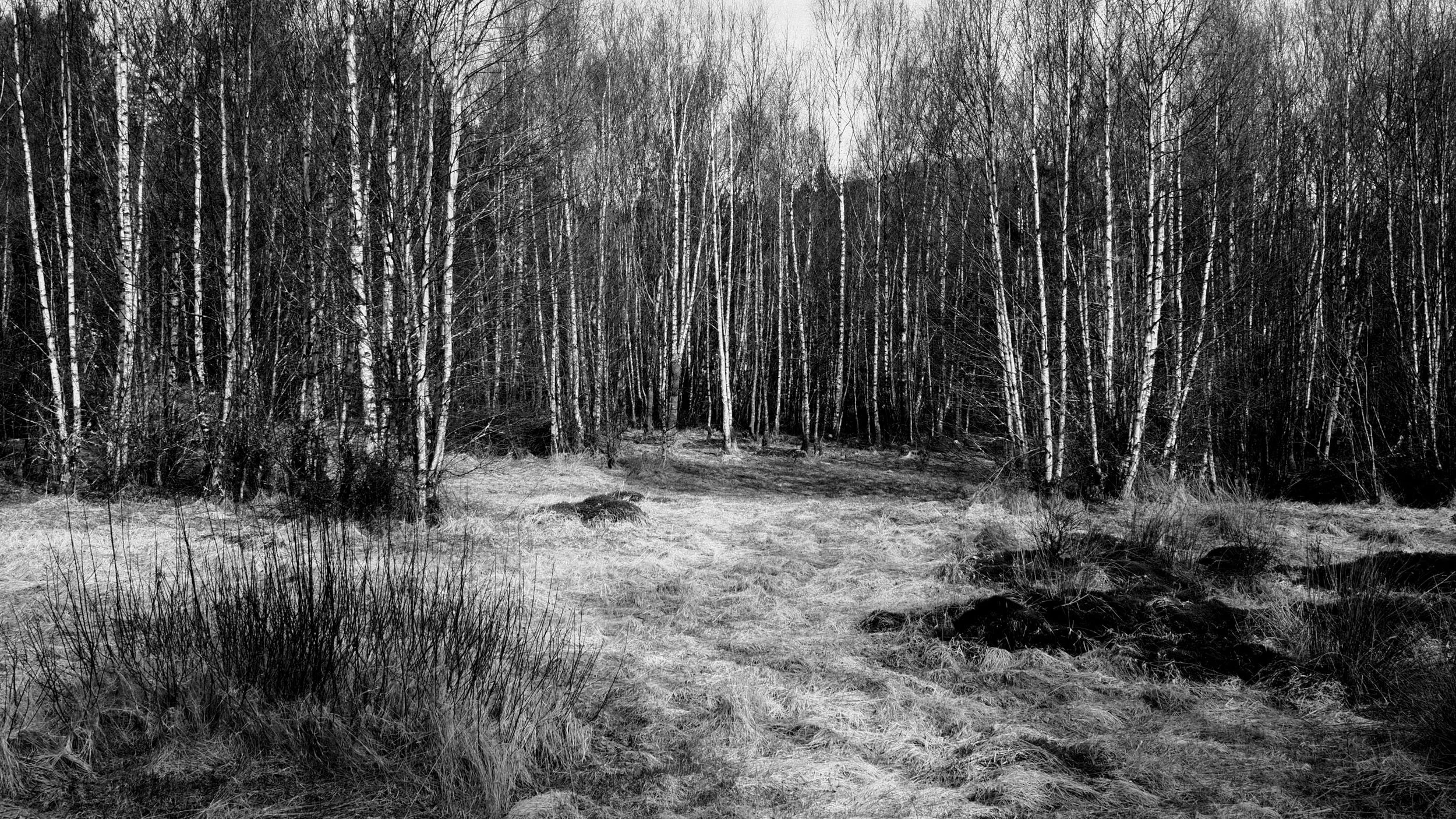 Eksperimentering med komposisjon av kvite bjørkestammer. Olympus PEN-F, M.Zuiko 17mm f/1,8